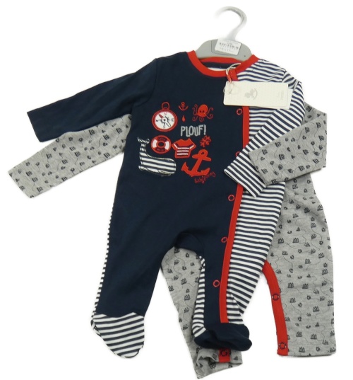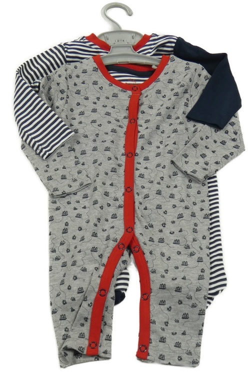 Nové - 2x overal - šedý melírovaný s loďkami + tmavomodro-pruhovaný s obrázky