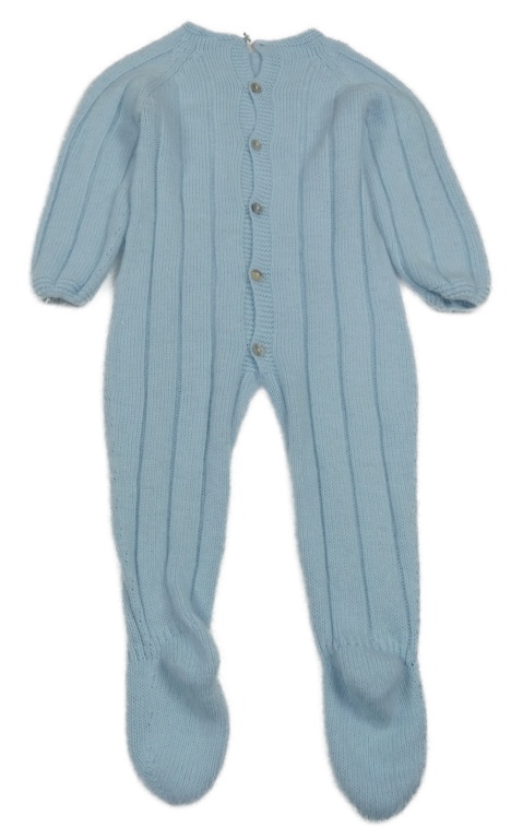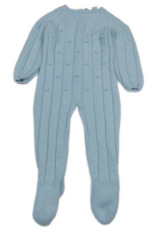 Světlemodrý chlupatý žebrovaný pletený overal s 3D bambulemi