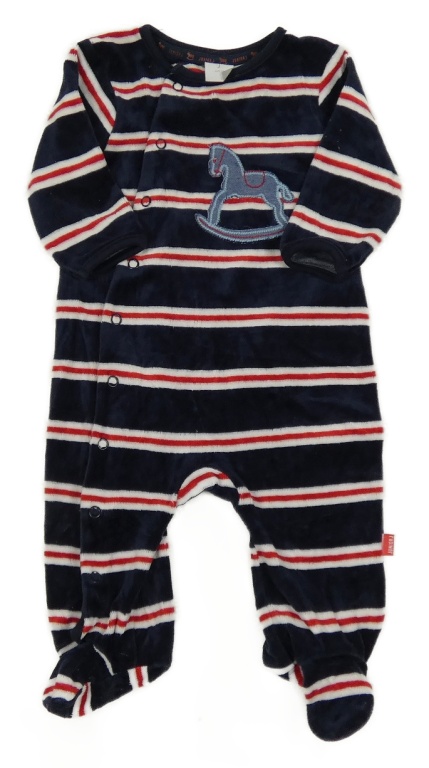 Tmavomodro-bílo-červený pruhovaný sametový overal s houpacím koněm Jasper Conran