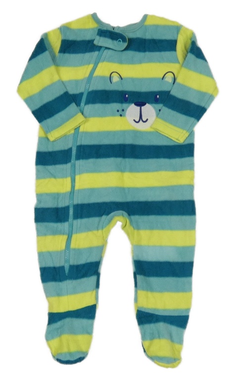 Zeleno-žlutý pruhovaný fleecový overal s medvídkem