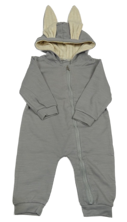 Šedý žebrovaný overal s kapucí s oušky