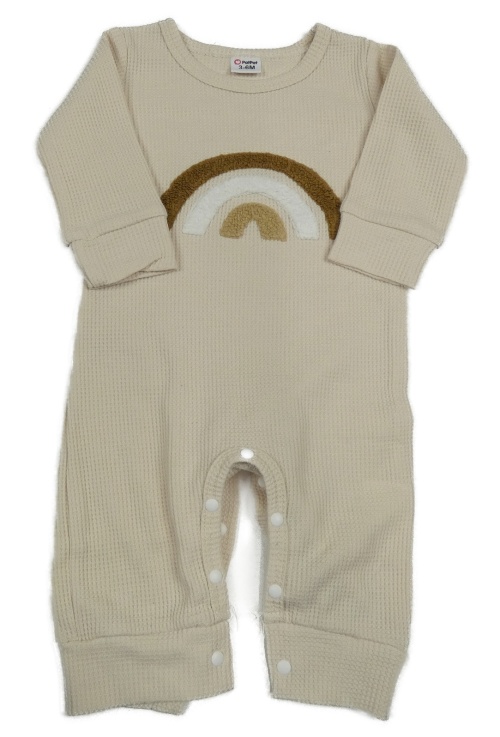 Světlebéžový žebrovaný overal s duhou