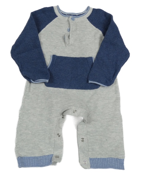 Světlešedo-tmavomodrý melírovaný žebrovaný pletený overal s kapsou Tu