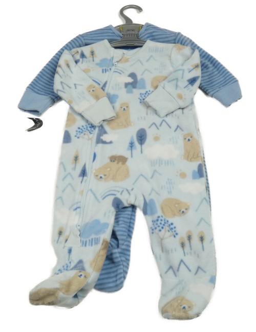 Nové - 2x fleecový overal - světlemodrý s medvědy + pruhovaný Dunnes