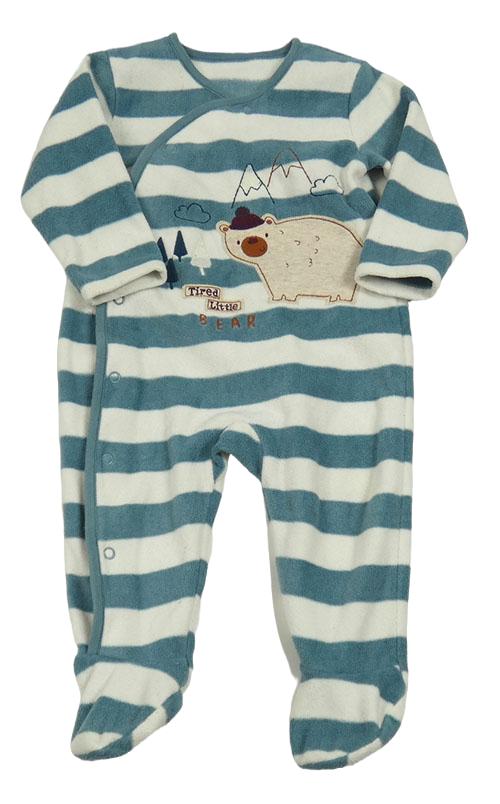 Zeleno-bílý pruhovaný fleecový overal s medvědem George