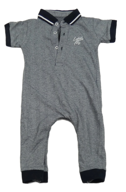 Tmavomodro-bílý vzorovaný polo overal s nápisem Matalan
