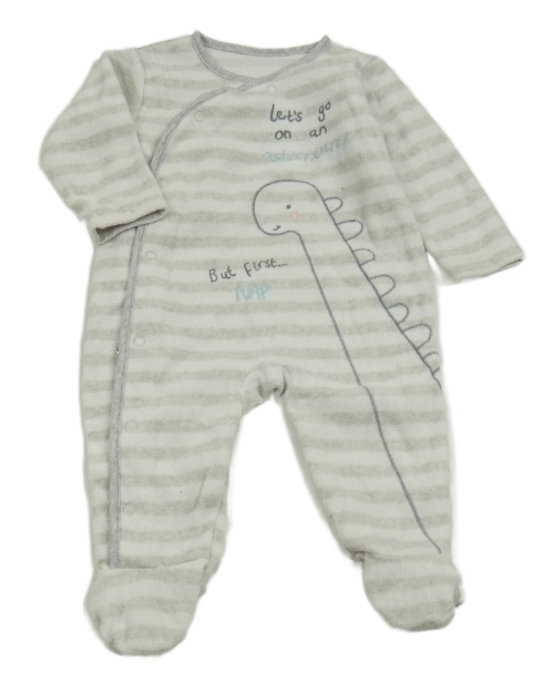 Bílo-šedý pruhovaný fleecový overal s dinem George