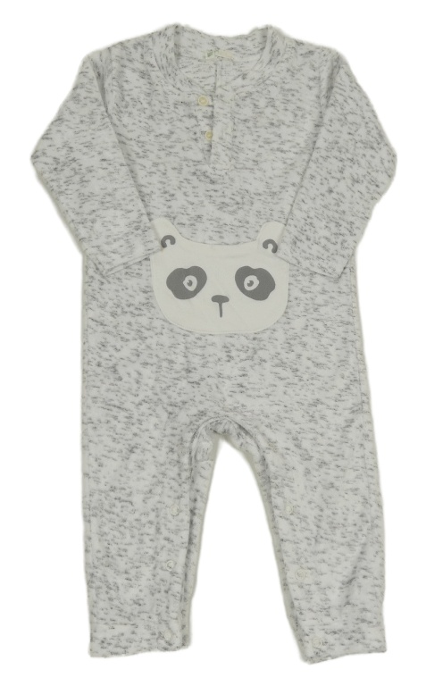 Bílo-šedý žíhaný sametový overal s pandou Benetton