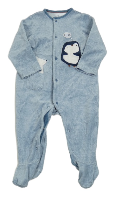 Světlemodrý melírovaný sametový overal s tučňákem C&A