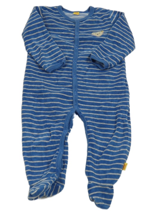 Modro-šedý pruhovaný sametový overal s medvídkem Steiff