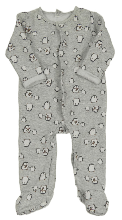 Šedý melírovaný teplákový overal s tučňáky Topomini