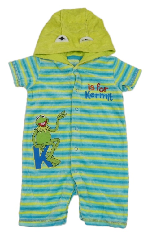 Zeleno-šedý pruhovaný sametový overal s žábou a kapucí George