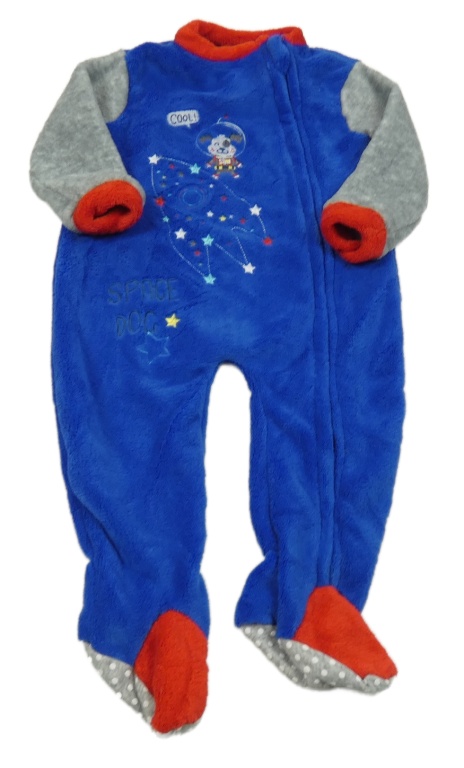 Kobaltově modro-šedý chlupatý overal s raketou a pejskem