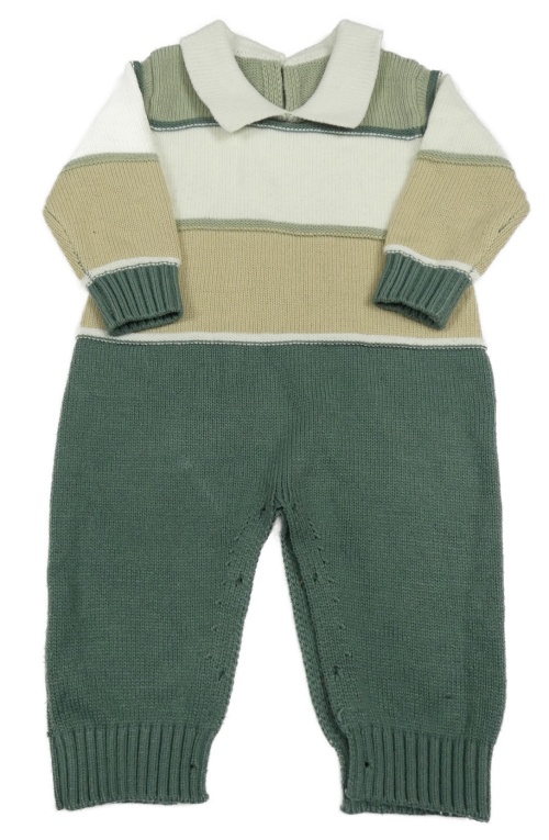 Khaki-béžovo-bílý pletený overal s límečkem SHEIN