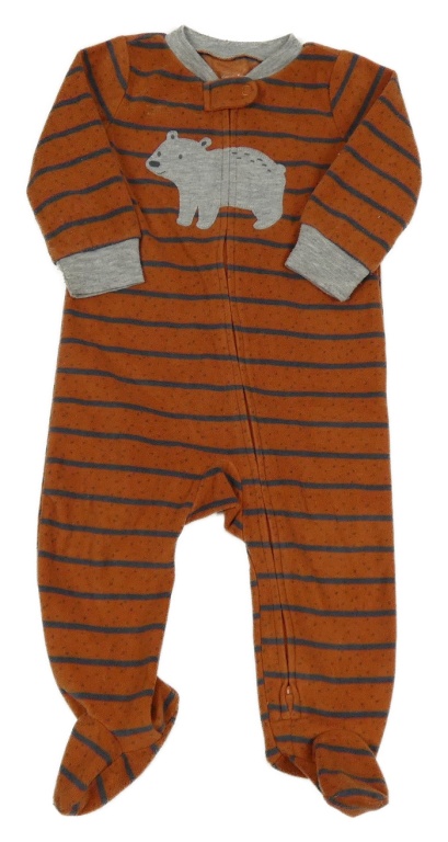 Hnědo-šedý pruhovaný fleecový overal s medvědem Carter's