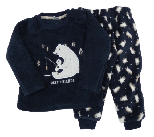 Tmavomodré chlupaté pyžamo s medvědem a tučňáky Orsolino