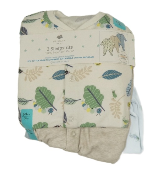 Nové - 3x - Šedý + světlemodrý + bílý overal s listy Primark