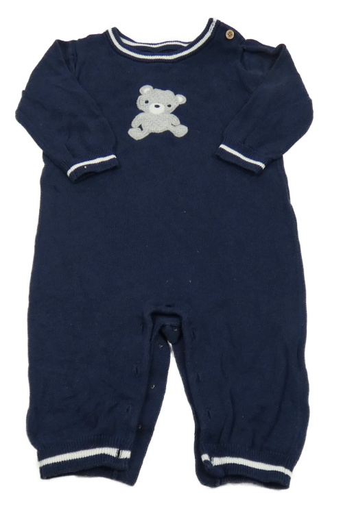 Tmavomodro-bílý pletený overal s medvídkem Nutmeg