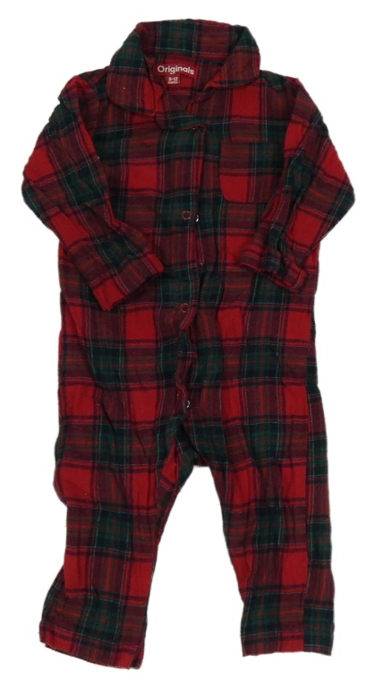 Červeno-zeleno-černý kostkovaný flanelový overal