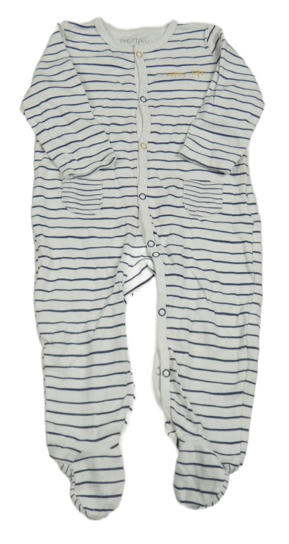 Bílo-tmavomodrý pruhovaný overal s nápisem Inextenso