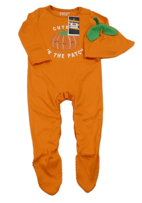 Nové - 2set - Oranžový overal s dýní + bavlněná čepice F&F