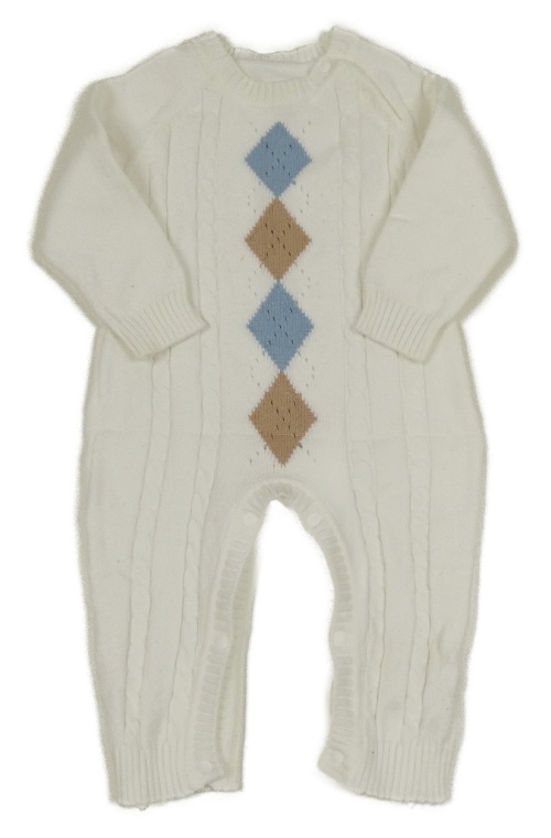 Bílo-modro-hnědý úpletový vzorovaný károvaný overal Shein