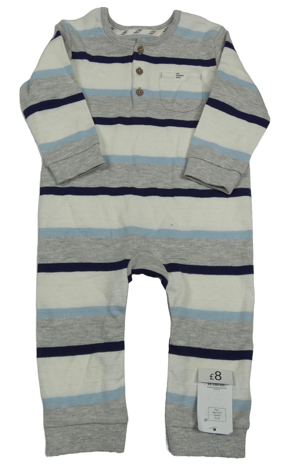 Nové - Šedo-bílo-modrý pruhovaný lněný overal s kapsou George
