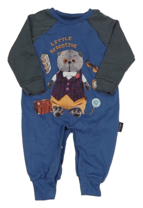 Modro-šedý overal s kočičkou a obrázky