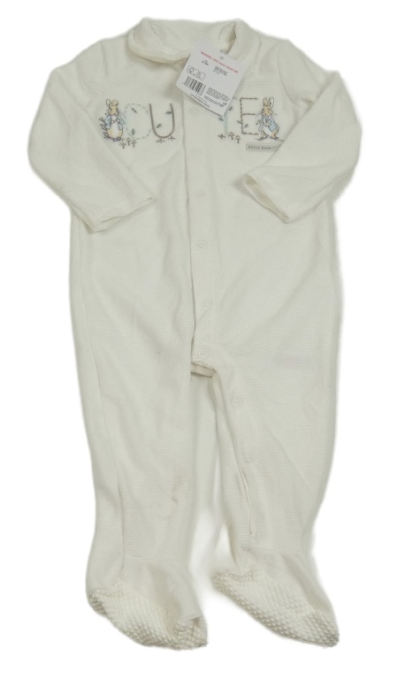 Nové - Bílý žebrovaný sametový overal s nápisem - Králíček Petr