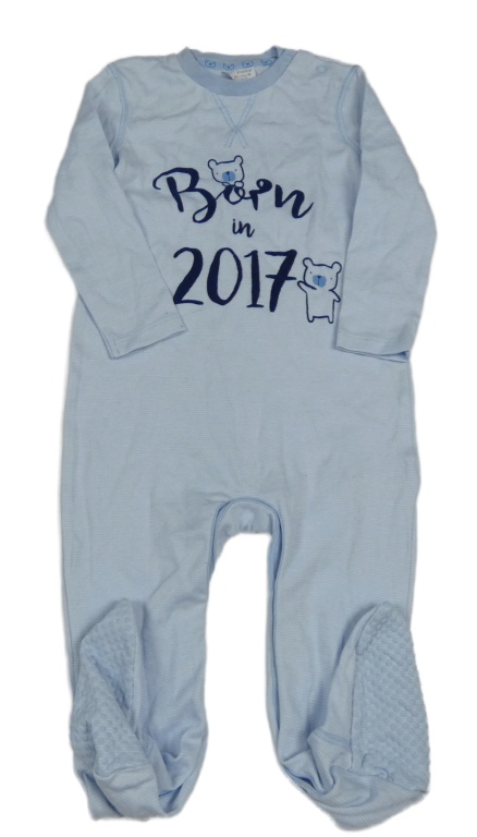 Světlemodro-bílý pruhovaný overal s nápisem a medvídky F&F