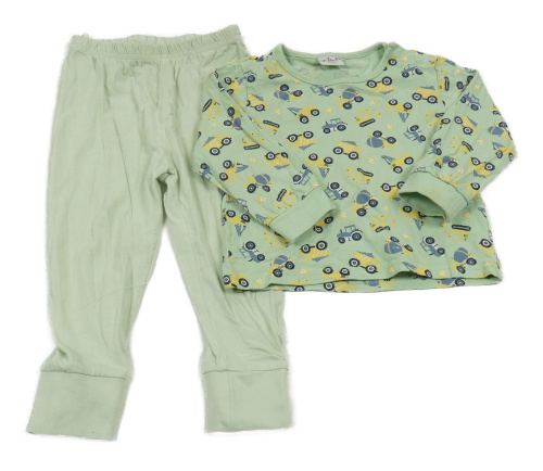 Světlezelené pyžamo s auty a bagry
