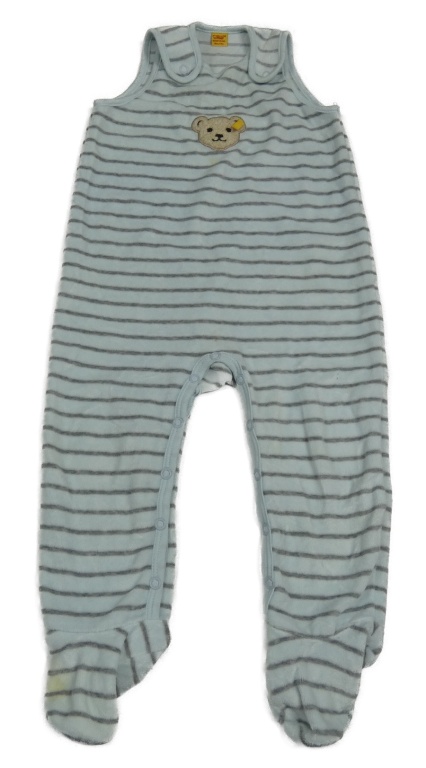 Světlemodro-šedé pruhované sametové dupačky s medvídkem Steiff