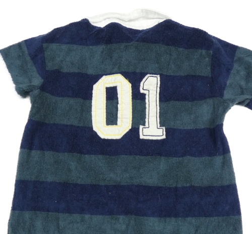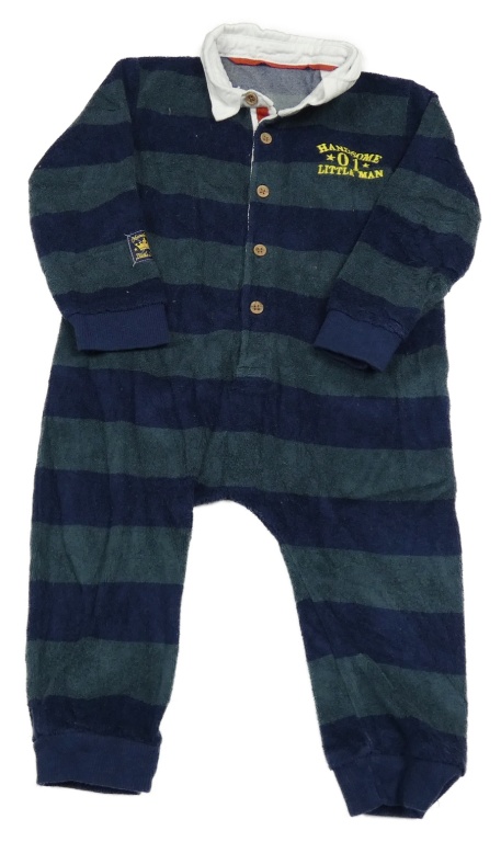 Tmavomodro-šedý pruhovaný froté overal s nápisem George