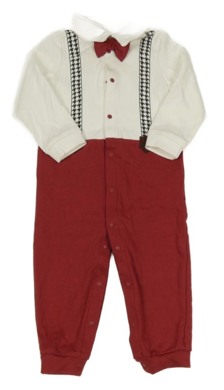 Bílo-vínový overal s kšandami a motýlkem Patpat