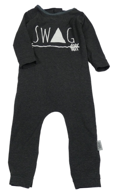 Tmavošedý melírovaný overal nápisem a šípem