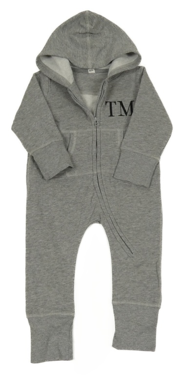 Šedý teplákový overal s písmeny a kapucí