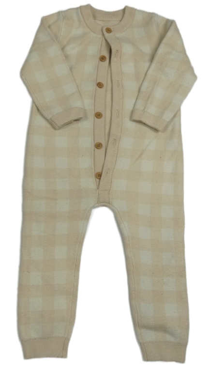 Světlebéžovo-bílý kostkovaný pletený overal George