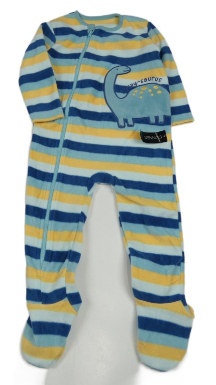 Nové - Modro-žlutý pruhovaný fleecový overal s dinosaurem Dunnes