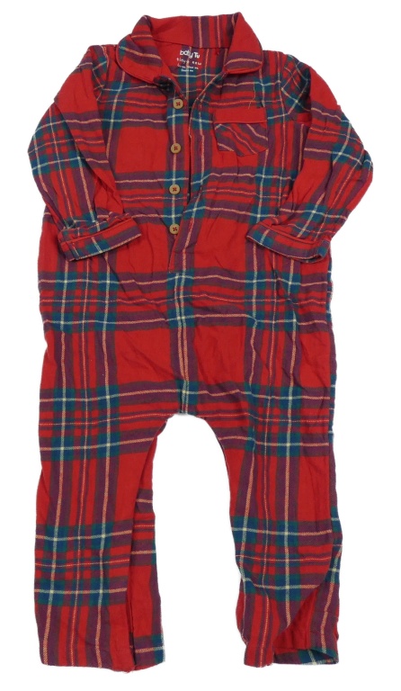 Červeno-zelený kostkovaný pyžamový overal Tu
