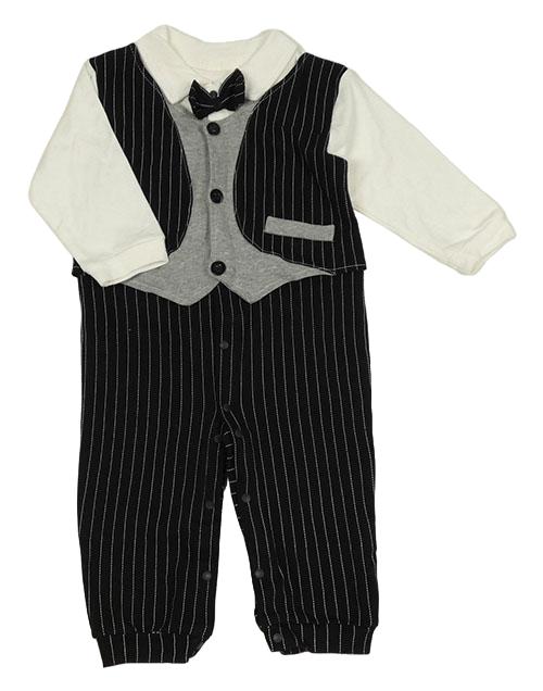 Černo-bílo-šedý overal s vestou a motýlkem