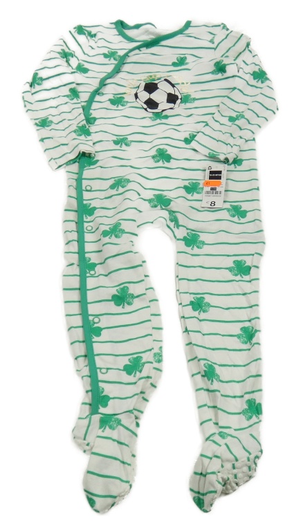 Nové - Bílo-zelený pruhovaný overal s trojlístky a míčem Dunnes
