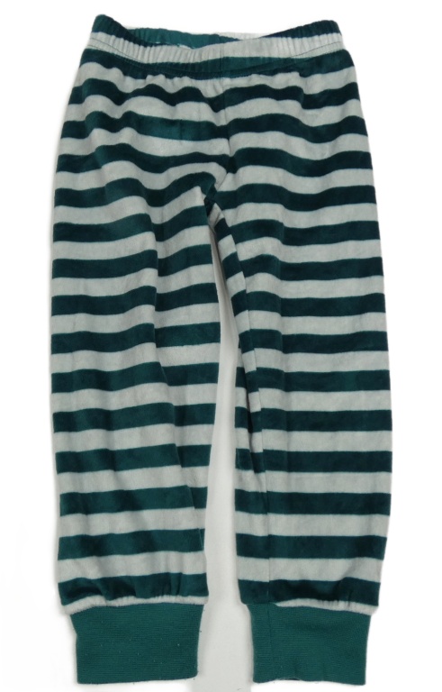 Zeleno-šedé pruhové sametové pyžamové kalhoty
