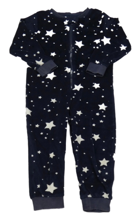 Tmavomodrý plyšový overal s hvězdami Matalan