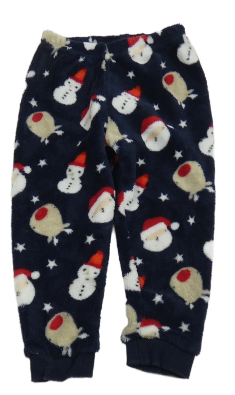 Tmavomodré chlupaté pyžamové kalhoty s vánočními obrázky Miniclub
