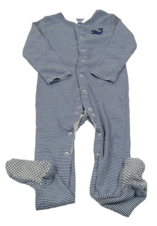Tmavomodro-bílý pruhovaný overal s velrybou M&S