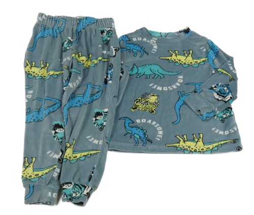 Modrošedé plyšové pyžamo s dinosaury V BY VERY