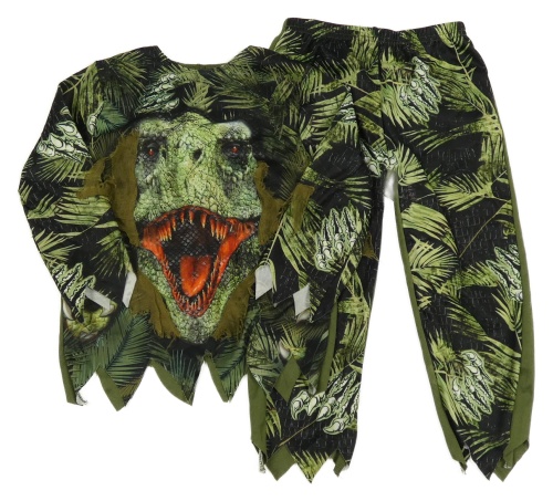 Kostým - 2Set - Černo-zeleno-khaki triko s dinosaurem a listy + kalhoty F&F