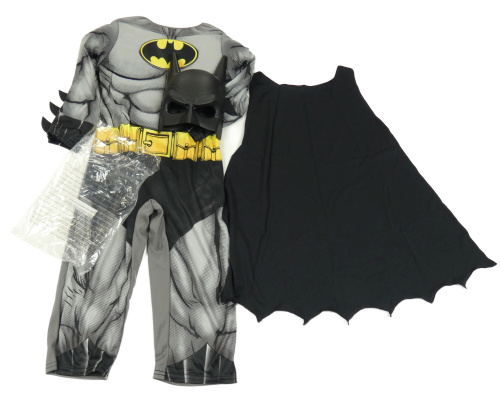 Nové - Kostým - 3set - Černá maska + Šedo-žlutý overal s ostny a logem + plášť - BATMAN