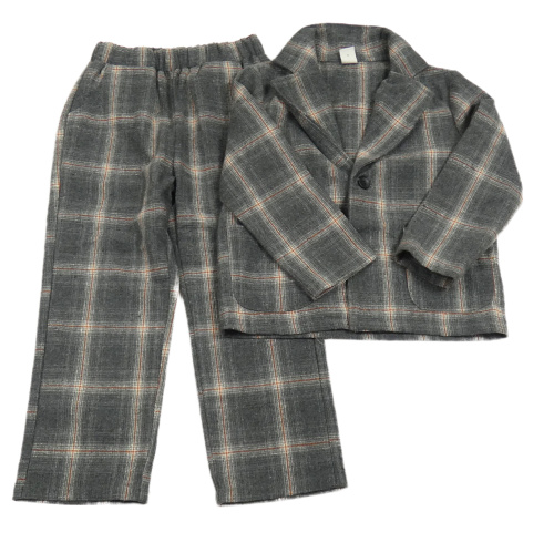 2Set - Tmavošedo-smetanovo-cihlové kostkované sako + kalhoty SHEIN