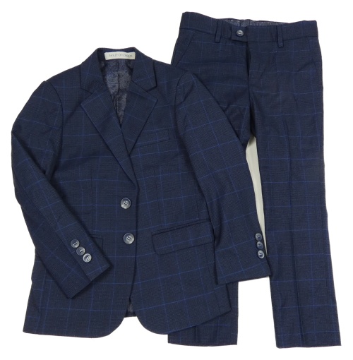 2set- tmavomodré kostkované slavnostní sako+ kalhoty